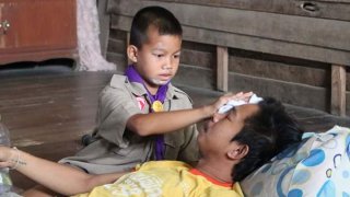 น้องอาร์ท "อายุ 10 ปี" เด็กชายยอดกตัญญู หาเลี้ยงครอบครัว 4 ชีวิต... น้องอาร์ท เด็กชายยอดกตัญญู หาเลี้ยงพ่อพิการ และปู่ย่าชรา ด.ช.อนุชา บุญไทย หรือ น้องอาร์ท อายุ 10 ปี นักเรียน ป.5 โรงเรียนวัดคุ้งยาง ต.บ้านด่าน อ.เมือง จ.อุตรดิตถ์ ต้องดูแลพ่อ นายอานนท์ บุญไทย ที่ป่วยด้วยโรคเบาหวาน ถูกตัดขา 1 ข้าง และยังต้องดูแลปู่ นายเฉลย บุญไทย อายุ 64 ปี ป่วยด้วยโรคเบาหวานเช่นกัน กับย่าที่แก่ชรา หูตึง นางรวย บุ.. ดูเพิ่ม