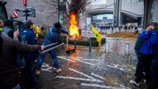 สื่อนอกรายงานว่า "เหล่าเกษตรกร ได้เดินมาที่กรุงบรัสเซลส์ เพื่อประท้วงงานประชุมสุดยอดผู้นำสหภาพยุโรป เพื่อช่วยพวกเขาเรื่องภาษี ต้นทุนที่สูงขึ้น และ การนำเข้าราคาถูก โดยพวกเขาปาไข่ใส่รัฐสภายุโรป จุดไฟใกล้อาคาร จุดพลุดอกไม้ไฟ ขว้างก้อนหินและระเบิดขวด" เจ้าหน้าที่ตำรวจ กล่าวว่า "ถนนหลายสาย ในกรุงบรัสเซลส์ ซึ่งเป็นศูนย์กลางของสหภาพยุโรป ถูกปิดกั้นโดยรถแทรกเตอร์ ประมาณ 1,000 คัน" และ "ชาวนาหลายคนปูป้าย.. ดูเพิ่ม
