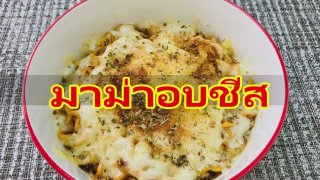 มาม่าอบชีส ส่วนผสม 1.มาม่าแบบแห้งรสฮอตโคเรียน 2.ไข่ไก่ 2 ฟอง 3.น้ำตาล 1 ช้อนชา 4.พริกไทยป่น ครึ่งช้อนชา 5.ซีอิ้วขาว 1 ช้อนชา 6.ซอสหอย 1 ช้อนชา 7.น้ำสะอาด ครึ่งถ้วย 8.ชีส 9.พริกปาปริก้าและออริกาโน่เล็กน้อย วิธีการทำ 1.ตอกไข่ไก่ใส่ถ้วย ปรุงรสด้วยน้ำตาล พริกไทยป่น ซีอิ้วขาว ซอสหอย น้ำ ตีให้เข้ากัน ปิดด้วยฟลอยเจาะรู เข้าไมโครเวฟ 3 นาที 2.ตั้งน้ำเอามาม่าต้ม 2 นาที ตักใส่ถ้วยใส่เครื่องปรุงมาม่าคลุกให้เข.. ดูเพิ่ม