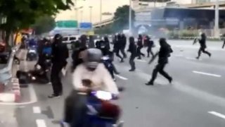 จัดหนัก!! ตำรวจควบคุมฝูงชนไทย ใช้กระสุนยางและแก๊สนํ้าตา สลายการชุมนุมของเขมร