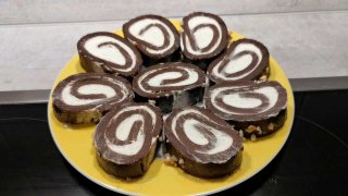 ช็อคโกแลตโรล ไม่ง้อเตาอบส่วนผสมมีดังนี้ตัวเค้กคุ๊กกี้รสช็อกโกแลต 300 กรัมผงโกโก้ 20 กรัมนมอุ่น 150 กรัม ไส้วิปปิ้งครีมเย็นจัด 200 กรัมน้ำตาลไอซิ่ง 30 กรัมผง Sahne steif 8 กรัม( ไม่มีไม่ต้องใส่ก็ได้) แต่งหน้าน้ำตาลไอซิ่ง 3 ชต.น้ำเปล่า 1 ชต.ถั่วบดสำหรับโรยหน้า วิธีทำ▶️https://youtu.be/OuLt4byVhMk ดูเพิ่ม