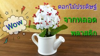 ทำดอกไม้ประดิษฐ์ จากหลอดพลาสติก ง่ายมาก