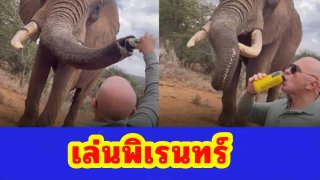 ฉาวสนั่น! นักท่องเที่ยวสเปน กรอกเบียร์ใส่งวงช้าง คนแห่จี้เอาผิด