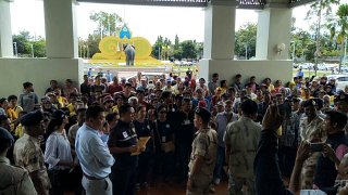 ชาวบ้านรวมตัวไล่ม๊อบหน้าศาลากลาง อ้างเป็นสถานที่ศักดิ์สิทธิ์ พร้อมเรียกร้องให้ทางจังหวัดเร่งนำที่ดินหมดสัมปทานจัดสรรให้กับคนกระบี่ เวลา 11.30 น.วันที่ 5 พ.ย.62 กลุ่มชาวบ้าน ต.กระบี่น้อย อ.เมือง จ.กระบี่ ประมาณ 300 คน นำโดย นายมโน เครือแก้ว กำนัน ต.กระบี่น้อย ได้รวมตัวเดินทางมาที่ศาลากลางจังหวัดกระบี่ เพื่อยื่นหนังสือเรียกร้องขอให้ พ.ต.ท.หม่อมหลวงกิติบดี ประวิตร ผู้ว่าราชการจังหวัดกระบี่ เร่งจัดสร.. ดูเพิ่ม