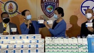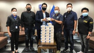 ดร.อมร มีมะโน ส่งตัวแทนมอบยาสมุนไพร เหลียนฮัว ให้กับกองบัญชาการตำรวจสืบสวนสอบสวนอาชญากรรมทางเทคโนโลยีในการรับประทานเพื่อป้องกันโควิด-19