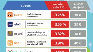 เดือนนี้เหมาะสำหรับคนที่อยากมีบ้านมากๆ เพราะดอกเบี้ยส่วนใหญ่จัดมาเพื่อส่งโปรโมชั่นเอาใจคนอยากมีบ้าน ดอกเบี้ยเฉลี่ย 3 ปี ต่ำสุดเพียง 1.99% จากธนาคารอาคารสงเคราะห์ บ้านบ้านอัปเดตดอกเบี้ยสินเชื่อใหม่ทุกเดือน เช็คเลยธนาคารไหนให้ดอกเบี้ยต่ำสุด มีเงื่อนไขอะไรบ้าง ไปดูกัน ข้อแนะนำ : ดูรายละเอียดแต่ละสินเชื่อฉบับเต็ม สิ่งสำคัญที่ควรทำความเข้าใจก่อนตัดสินใจเลือกดอกเบี้ย 1. การจัดอันดับข้างต้นเป็นการพิจารณา.. ดูเพิ่ม