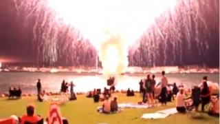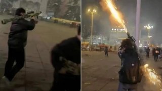 คู่รักยืนจูบดูพลุวันปีใหม่ แต่สาวกลับโดนพลุพุ่งใส่เจ็บหนัก
