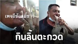 คลิปสุดอึ้ง หนุ่มมาเลย์ กัดกินลิ้นตะกวดกันสดๆ ตัวเป็นๆ
