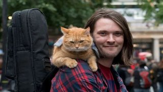 จขกท. ได้ยินเรื่องนี้มานานแล้วแหละ แต่ที่ไปอ่านข้อมูลมาแบบย่อๆ เรื่องมีอยู่ว่า บ็อบเป็นแมวที่ไม่มีเจ้าของถูกทิ้งข้างถนนแล้วมีหนุ่มดนตรี ชื่อว่า โบเว่น เค้าเป็นหนุ่มติดสารเสพติด(เฮโรอีนมั้งน่ะ) ได้เดินไปพบ เจ้าบ็อบที่กำลังใกล้ตาย พาส่งคลีนิกรักษาสัตว์ แต่ในตอนที่เค้ากำลัง เดินออกจากคลีนิกนั้นเจ้าบ็อบก็วิ่งตามไปทุกที่ ทุกที่ที่เค้าไปไหนมาไหน เพราะที่เค้าออกจากที่นั้นเค้าไม่มีเงินมากพอที่จะรักษาเจ้า.. ดูเพิ่ม