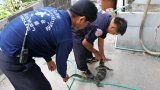 ระทึก! เ...้ยยักษ์หนีหมา มุดฝาท่อเอวติด โผล่ครึ่งตัว กู้ภัยทุบฝาท่อช่วยวุ่น