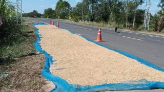ตากข้าวบนถนน