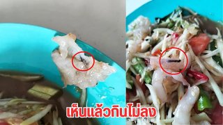 ตำกุ้งสด สภาพเห็นแล้วกินไม่ลง ผู้ใช้ Facebook รายหนึ่งเธอได้โพสต์ภาพ ตำกุ้งสด ในกลุ่ม “พวกเราคือผู้บริโภค” โดยเธอระบุว่า “ขอความคิดเห็นให้จานนี้กับคำว่า ตำกุ้งสด หน่อยค่ะคิดเห็นกันอย่างไรคะ ส่วนตัวคือเฟลสุดๆ (เคยซื้อร้านนี้ครั้งแรกไปซื้อที่ร้าน) สั่งตำกุ้งสด แต่เราเห็นแม่ค้านำกุ้งออกมาจากฟริช ซึ่งกุ้งจับตัวเป็นก้อนแข็ง แล้วแม่ค้าใช้มีดหั่นกุ้งแล้วบอกว่าถึงบ้านก็กินได้หายแข็งพอดี.. ดูเพิ่ม