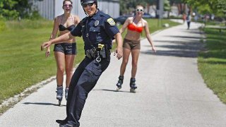ตำรวจกำลังเล่นสเก็ตบอร์ด และแม้แต่สาวสวยที่อยู่เบื้องหลังก็ตกใจ ใน "วันผู้หญิงแห่งชาติ" ตำรวจถือดอกไม้ข้างถนน ถ้าเห็นว่าคนขับเป็นผู้หญิง ก็ให้ดอกไม้ สาวๆ ที่ได้รับดอกไม้ก็ยิ้มอย่างมีความสุข ตำรวจขี่รถของเล่นเป็น 'รถตำรวจ' ประมาณการว่าจะต้องใช้เวลาอีกนานกว่าจะถึงที่หมายด้วยความเร็วนี้ ตำรวจแย่งเล่นชิงช้า เด็กๆ ไม่รู้ว่าต้องทำอย่างไร เพราะในสายตาของพวกเขา ตำรวจมีความน่าเกรงขามมาก ตำรวจถ่ายเซลฟี่ นัก.. ดูเพิ่ม