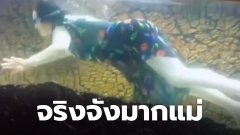 ขำลั่น! มนุษย์แม่ชาวจีน จริงจังมากลงไปอยู่ในตู้ปลา ดำผุดดำว่ายไล่จับปลา
