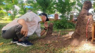 ครอบครัวจอมปลวกแปลก! รูปร่างพ่อแม่ลูก 9 รัง ใต้ต้นจามจุรี อายุ 100 ปี
