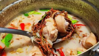 #ครัวบ้านแม่ ต้มส้มขาหมูสมุนไพร ต้มยำ ขา หมู สูตรเด็ดเคล็ดไม่ลับ ต้นยำขาหมู หรือคนเหนือมักจะเรียกว่า ต้มส้มขาหมู ชื่อดูแตกต่างกัน แต่สูตรเดียวกัน อร่อยเหมือนกัน สำหรับคนที่ชื่นชอบการทานขาหมู เมนูนี้ต้องไม่พลาด เราเคี่ยวหมูจนเปื่อยนุ่ม ใ่ส่สมุนไพรลงไป ทำให้ได้น้ำซุปที่หวาน นุ่ม อร่อย แทบจะละลายในปาก เมนูแซ่บๆ น้ำซุปเด็ดๆ ลองทำดูนะครับ รับรองว่าอร่อยถูกปากใครหลายๆคน การต้มน้ำซุปด้วยสมุนไพรพื้นบ้าน ท.. ดูเพิ่ม