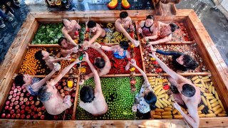 เป็นบริการพิเศษของโรงแรมที่หางโจว ประเทศจีนนะ ที่จะเตรียมน้ำแช่ตัวพร้อมใส่วัตุดิบลงไปให้ลูกค้าเลือกแช่ตัวกัน แถมยังมีอาหารให้กินหรือทำกินอีกด้วย เป็นบรรยากาศที่สัมผัสด้วยตัวเองอย่างแท้จริงเลย ได้ความรู้สึกสมจริงว่าตัวเองกำลังจะถูกกินจะคล้ายแบบนี้หรือเปล่า? อย่าเผลอหน้ามืดตามัวลองกินเพื่อนที่อยู่ข้างๆ เข้าไปด้วยก็แล้วกันนะ แบบนี้จะมีใครกล้าลงไปแช่น้ำซุปหมาล่า หรือน้ำซุปต้มแซ่บไหมน๊า??? ดูเพิ่ม