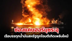ช่องแคบฮอร์มุซระอุ เรือบรรทุกน้ำมันสหรัฐถูกโจมตีเกิดเพลิงไหม้