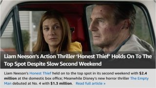 ทรชนปล้นชั่ว หนังใหม่เลียมนีสัน Honest Thief ขึ้นอันดับ 1 ที่อเมริกา 2 สัปดาห์ซ้อน ขณะที่ยังมีโรงหนังปิดในรัฐใหญ่เพราะเหตุโควิด-19
