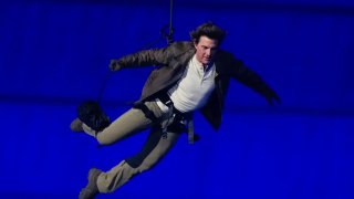 "ทอม ครูซ" โรยตัวจากหลังคา ระหว่างพิธีปิดโอลิมปิก