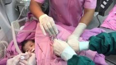 พ่อแม่จัดงานศพให้ลูกที่ยังแบเบาะ แต่เด็กกลับคว้ามือคนในงานศพไว้ คนจึงรีบนำส่งโรงพยาบาลเพื่อช่วยชีวิต