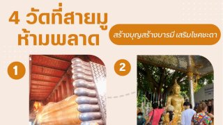 4 วัดที่สายมูห้ามพลาด 1. วัดพระเชตุพนวิมลมังคลาราม หรือวัดโพธิ์ เป็นพระอารามหลวงชั้นเอก และเป็นวัดประจำรัชกาลพระบาทสมเด็จพระพุทธยอดฟ้าจุฬาโลกมหาราช (รัชกาลที่ 1) ตั้งอยู่กรุงเทพมหานคร คนนิยมกราบเพื่อเสริมด้านการงาน โชคลาภ และขอพรเรื่องความรัก สำหรับการเดินทาง สามารถนั่งโดย MRT ไปลงสถานีสนามไชย ใช้ทางออกที่ 1 (มิวเซียมสยาม) แล้วเดินไปยังวัดได้เลยค่ะ 2. วัดพระธาตุวาโย(วัดห้วยน้ำทรัพย์ หรือวัดหลวงพ่อ.. ดูเพิ่ม