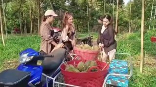 "สวนทุเรียน ระยอง "จ้างโคโยตี้เก็บทุเรียนฉลองความสำเร็จ