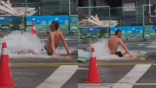 สื่อนอกรายงานว่า "สถานที่ก่อสร้างบนถนนเฟงซอง เขตเฟงชาน เมืองเกาสง ประเทศไต้หวัน เกิดเหตุท่อน้ำถูกขุดโดยไม่ได้ตั้ง ส่งผลทำให้น้ำไหลทะลักออกมา และ ท่วมถนนเส้นดังกล่าว มอเตอร์ไซค์สัญจรค่อนข้างลำบากและอันตราย ร้านค้าใกล้เคียงกังวลว่าร้านจะถูกน้ำท่วม... แต่แล้วก็มีคนงานในไซต์ ถอดเสื้อและรองเท้าออก แล้วนั่งตรงจุดที่น้ำไหลออกมา ซึ่งดูเหมือนว่าเขาต้องการอุดรูด้วยก้นของเขา ซึ่งมันก็ลดจำนวนน้ำที่ไหลทะลักออ.. ดูเพิ่ม