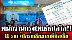 พนักงานกรุงไทยติดโควิด!! 11 ราย เปิดรายชื่อสาขาที่ติดเชื้อ