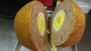 ชายผู้สร้างไข่สก๊อตที่ใหญ่ที่สุดในโลก ชายผู้สร้างไข่สก๊อต ที่ใหญ่ที่สุดในโลก ได้กล่าวว่า เขาไม่คิดว่าขนมยอดนิยมขนาดธรรมดา ถือเป็น 'มื้อสำคัญ' Jon Fell จากเมือง Egremont ในคัมเบรีย ทำไข่สก็อตขนาดใหญ่ น้ำหนัก 7 ปอนด์ และมีเส้นผ่านศูนย์กลาง 18 นิ้ว Fell ใช้ไข่นกกระจอกเทศ ที่บินมาจากเม็กซิโก เช่นเดียวกับ เนื้อไส้กรอก 1 ก้อนครึ่ง, ขนมปัง 5 ก้อน, นม 2 ลิตร Fell ใช้เวลา 8 ชั่วโมง ในการสร้าง และเลี้ยงคน 7.. ดูเพิ่ม