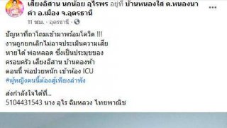 หลังจากสถานการณ์ CV-19 ทุกคนต่างได้รับผลกระทบกันเป็นจำนวนมาก ล่าสุดนักร้องหมอลำชื่อดัง คุณแม่นกน้อย อุไรพร จากสถานการณ์การแพ ร่ก ระจ ายของ CV-19 ในรอบที่2 ส่งผลกระทบเต็มๆกับศิลปินและวงหมอลำหลายวงในภาคอีสาน โดยหนึ่งในนั้นก็คือวงเสียงอิสานหมอลำชื่อดัง โดยมีคุณแม่นกน้อย เป็นหัวหน้าผู้นำทีมงาน ก่อนหน้านี้คุณแม่นกน้อยได้ออกมาประกาศขายบ้านเพื่อนำเงินมารักษาสามีและเพื่อรักษาวงเสียงอิสานให้ได้สืบสานตำนานห.. ดูเพิ่ม