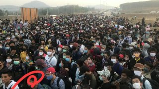 วันนี้ด่านพรมแดนถาวรแม่สอดปิดเป็นวันที่สาม แต่แรงงานพม่าจำนวนมากยังคงแห่เดินทางหนีอพยพออกจากกรุงเทพหลังห้างร้านต่างๆหยุดงาน