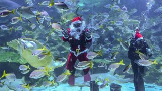 นักดำน้ำแต่งเป็นซานตาคลอส ระหว่างการแสดงในมาเลเซีย นักประดาน้ำแต่งตัวเป็นซานตาคลอส โบกมือให้ผู้มาเยี่ยมชมระหว่างการแสดง ที่พิพิธภัณฑ์สัตว์น้ำ Aquaria KLCC ใน Kuala Lumpur, Malaysia นักดำน้ำที่แต่งตัวเป็นซานตาคลอส ให้อาหารเต่า ระหว่างการแสดง นักดำน้ำที่แต่งตัวเป็นซานตาคลอส สัมผัสกับปลากระเบนในระหว่างนั้น เด็กๆ กำลังดูการแสดงของ นักดำน้ำที่แต่งตัวเป็นซานตาคลอส ดูเพิ่ม