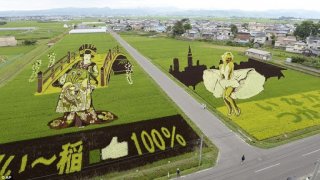 ตั้งแต่ปี 1993 ชาวนาในหมู่บ้านญี่ปุ่นอินะคะดาเตะในจังหวัดอาโอโมริได้สร้างสรรค์การออกแบบอย่างประณีตบนผืนนาข้าวโดยการผสมสายพันธุ์ข้าวหลากหลายสายพันธุ์เข้าด้วยกันเพื่อสร้างงานศิลปะขนาดใหญ่ ในแต่ละปีชาวนาเหล่านี้จะปลูกข้าวที่มีสีต่างกันเพื่อสร้างผลงานศิลปะใหม่ ๆ และพวกมันจะอยู่ได้ตลอดฤดูปลูกจนถึงเวลาเก็บเกี่ยว ในช่วงหลายปีที่ผ่านมาพวกเขาได้ผลิตชิ้นงานศิลปะคลาสสิกเช่นโมนาลิซาและภาพบุคคลในประวัติศาสตร์เ.. ดูเพิ่ม