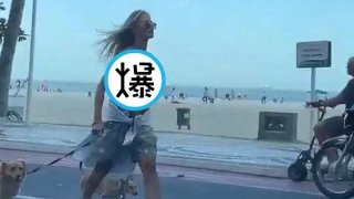นางแบบสาวโดนจับ หลังเปลือยนมจูงหมาเดินเล่น