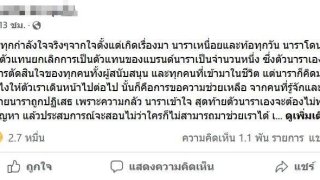 นารา เครปกะเทย เน็ตไอดอลชื่อดัง เจอเพื่อนฝูงปฏิเสธไม่รับรีวิวสินค้า หลังเกิดเรื่องโฆษณาลาซาด้าหมิ่นสถาบัน แม้จะจ้างเต็มจำนวน ลั่นไม่ท้อแต่จำไว้ ต้องเริ่มใหม่ อย่าให้ใครมาเหยียบ บอกตัวเอง "กูยังดังด้วยตัวเองได้เลย" ล่าสุด นารา โพสต์ข้อความระบุว่า "ขอบคุณทุกกำลังใจจริงๆ จากใจ ตั้งแต่เกิดเรื่องมา นาราเหนื่อยและท้อทุกวัน นาราโดนยกเลิกงานและตัวแทนยกเลิกการเป็นตัวแทนของแบรนด์นาราเป็นจำนวนหนึ่ง ซึ่งตัวน.. ดูเพิ่ม