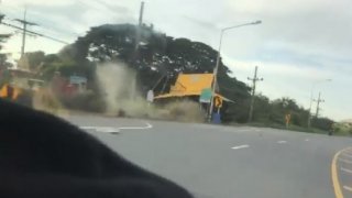 คลิปวินาทีระทึก! เก๋งเสียหลักพุ่งชนศาลาริมทาง ทั้งรถทั้งศาลาพังยับ...