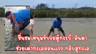 ชื่นชม หนุ่มขับรถตู้น้ำใจงาม ช่วยเต่าทะเลอ่อนแรง พาลงกลับทะเล