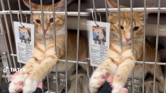 สื่อนอกรายงานว่า "ศูนย์พักพิงสัตว์ ในเมืองนวร์ก รัฐนิวเจอร์ซีย์ ประเทศอเมริกา ได้เผยแพร่คลิปของเจ้าเหมียวสีส้มแสนน่ารักตัวหนึ่ง ที่ถูกขังอยู่ในกรงเหล็กเพื่อรอใครสักคนมารับมันไปเลี้ยง ซึ่งมัะนได้ทำการเอื้อมอุ้งมือเล็กๆของมัน ออกมาจากช่องว่างของซี่กรง เพื่อจับมือของอีกฝ่ายไว้แน่น ราวกับว่ามันกลัวว่าอีกฝ่ายจะทิ้งมันไปอีก..." เจ้าหน้าที่ของศูนย์พักพิงกล่าวว่า "ดวงตาของแมวสีส้มตัวนี้ เต็มไปด้วยน้ำตา" แ.. ดูเพิ่ม