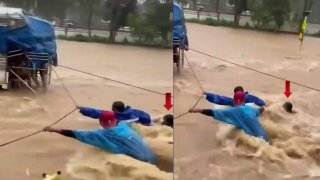 ระทึก!ช่วยชีวิตนักเรียน9ชีวิต ติดบนรถสองแถวกลางสายน้ำเชี่ยว