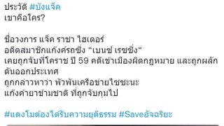 ทนาย ษิทรา เบี้ยบังเกิด เลขาธิการมูลนิธิทีมงานทนายประชาชนฯ โพสต์เรื่องราวสุดช็อก บังแจ็คถึงกับต้องขู่ฆ่ากันขนาดนี้เลยเหรอ ไม่รู้ว่าคุณหนุ่มเห็นหรือยัง ผมรู้สึกเป็นห่วงความปลอดภัยของครอบครัวคุณหนุ่มมากเลยตอนนี้ แค่เปิดประเด็นเรื่องผ้าที่บังแจ็คอุปโลกขึ้นมา เจ็บแค้นหนักถึงกับต้องเอาปืนมาขู่ยิง ไม่รู้เจ้าหน้าที่ตำรวจเห็นหรือยัง น่าจะดำเนินการกับบังขายถั่วคนนี้ที่สร้างความวุ่นวายให้กับคนไทยมามากพอแล้.. ดูเพิ่ม