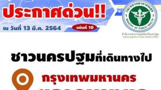 สำนักงานสาธารณสุข จังหวัดนครปฐม ประกาศว่า "ใครที่เดินทางไปตลาดบางแค ให้รีบเข้ารับการตรวจหาเชื้อไวรัสโควิด19 ทันที เนื่องจากตลาดบางแคตอนนี้ พบผู้ติดเชื้อไม่มีอาการ 80 ราย จึงเร่งตรวจเพิ่มอีกกว่า 1,000 ราย ประกาศระบุว่า หากท่านเดินทางไปตลาดบางแค ตั้งแต่วันที่ 27 ก.พ. ถึง 13 มี.ค. 2564 ให้ขอรับการตรวจคัดกรองหาเชื้อ ที่โรงพยาบาลรัฐใกล้บ้าน แจ้งเหตุสาธารณสุข เพราะที่ตลาดบางแคตอนนี้ พบผู้ติดเชื้อไม่มีอ.. ดูเพิ่ม
