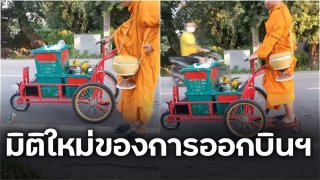มิติใหม่ แห่งการบิณฑบาตร !! ยืนขับไปแบบ เท่ห์ ๆ