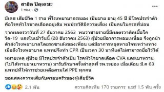 สาธิต ปิตุเตชะ รมช.สาธารณสุข เผย มีผู้ติดเชื้อโควิด-19 เป็นชายอายุ 45 ปี เสียชีวิตแล้ว 1 ราย โดยผู้เสียชีวิตเป็นคนโบกรถที่บ่อน มีโรคประจำตัวคือ หัวใจขาดเลือด และเบาหวาน มีเคส เสียชีวิต 1 ราย ที่โรงพยาบาลระยอง เป็นชาย อายุ 45 ปี มีโรคประจำตัวคือโรคหัวใจขาดเลือดอยู่เดิม พบประวัติมีความเสี่ยง เป็นคนโบกรถที่บ่อน จากผลตรวจวันที่ 27 ธันวาคม 2563 พบว่าชายรายนี้มีผลตรวจติดเชื้อโควิด-19 และในเช้าวันนี้ (28.. ดูเพิ่ม