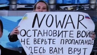สื่อนอกรายงานว่า "ศาลรัสเซียได้ประกาศจับตัว นักข่าวสาวที่ชื่อว่า "มารินา โอฟส์ยานนิโควา" หลังจากที่เธอชูป้ายกลางรายการว่า "ไม่เอาสงคราม" ผ่านสื่อโทรทัศน์..." และ "ตอนนี้เธอหนีออกจากรัสเซียไปแล้ว" และ "หากศาลตามจับเธอได้ เธอจะติดคุกประมาณ 10 ปี..." ดูเพิ่ม