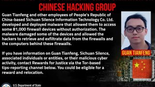 กระทรวงการต่างประเทศ ของอเมริกา ได้ออกมากล่าววานนี้ว่า "เราได้ออกประกาศจับชายจีนสัญชาติอเมริกัน "กวาน เทียนเฟิง" วัย 30 ปี ซึ่งคาดว่าอาศัยอยู่ที่มณฑลเสฉวนของจีน ฐานแฮกเกอร์และฉ้อโกง โดยมีรางวัลนำจับ 10 ล้านดอลลาร์..." รัฐมนตรีช่วยว่าการกระทรวงยุติธรรม "ลิซา โมนาโก" กล่าวว่า "เขาและผู้ร่วมสมคบคิด [บริษัทเสฉวนไซเรน] ได้อาศัยจุดอ่อนของไฟร์วอลล์ และ ขโมยข้อมูลจากเหยื่อทั่วโลก เช่น ยูสเซอร์เนมและพาสเว.. ดูเพิ่ม
