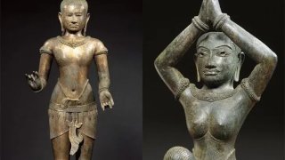 ประติมากรรมสำริดรูปพระเจ้าชัยวรมันที่6 หรือ Golden Boy และประติมากรรมรูปสตรีพนมมือ (The Kneeling Female) เดินทางถึงประเทศไทยแล้วในเวลา 7.00 น. ขณะนี้อยู่ระหว่างการตรวจสอบสภาพกล่อง ซึ่งอยู่ในกระบวนการทางศุลกากร โดยมี น.ส.นิตยา กนกมงคล ผู้อำนวยการสำนักพิพิธภัณฑสถานแห่งชาติ ร่วมตรวจสอบ แถมภาพความ fail ของเขมร ที่เคลมชุดและท่ารำ โดยอ้างประติมากรรมทั้งสองชิ้น สุดท้ายเป็นของคนไทยทั้งสองอย่าง หน้าหลาไปเ.. ดูเพิ่ม