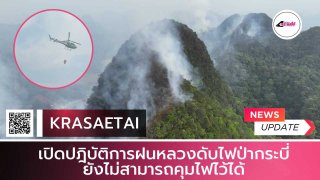 Update4 : กระบี่เปิดปฎิบัติการฝนหลวงดับไฟป่า เขาปากเบนกระบี่แล้ว วันนี้ (10 มี.ค.67) เวลา 15.00 น. เฮลิคอปเตอร์กรมฝนหลวงและการบินเกษตร เปิดปฏิบัติการดับไฟป่า บริเวณเขาปากเบน ต.เขาทอง อ.เมืองจังหวัดกระบี่ แล้ว หลังเกิดไฟป่าเผาไหม้เทือกเขาเมื่อ 3 วันที่ผ่านมา ขยายวงกว้างเกือบ 150 ไร่ ด้วยพื้นที่ที่เป็นเทือกเขาสูง มีความลาดชัน 90 องศา ทำให้การดับไฟป่าในครั้งนี้ ไม่สามารถดับไฟภาคพื้นดินได้ จำเป็นต้องใ.. ดูเพิ่ม