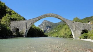 สะพาน Plaka เหนือแม่น้ำ Arachthos เป็นสะพานหินโค้งเดียวที่ใหญ่ที่สุดในกรีซและคาบสมุทรบอลข่านและเป็นสะพานหินโค้งเดียวที่ใหญ่เป็นอันดับสามในยุโรป โค้งหินวัดได้ 40 เมตรและโค้งตระหง่านเหนือแม่น้ำ 21 เมตรเหนือน้ำ สร้างโดย Constantinos Bekas ในปี 1866 หลังจากที่ผู้สร้างรายอื่นพยายามทำไม่สำเร็จถึงสองครั้งสะพานแห่งนี้มีอายุ 148 ปีที่เหลือรอดจากการทิ้งระเบิดของเยอรมันในช่วงสงครามโลกครั้งที่สองโดยอ้างสิทธิ์.. ดูเพิ่ม