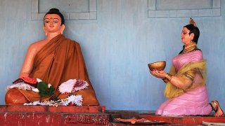 ชายต่างถิ่นกับชายชราตาบอด คืนหนึ่ง ชายต่างถิ่นคนหนึ่งเดินทางอยู่กลางป่า ท่ามกลางความมืดที่แทบมองอะไรไม่เห็น ขณะที่เขาคลำทางอย่างระมัดระวัง เขาก็เห็นแสงตะเกียงเล็ก ๆ ลิบ ๆ อยู่ข้างหน้า เมื่อเดินเข้าไปใกล้ ก็พบว่าเป็นชายชราคนหนึ่งกำลังเดินถือไม้เท้าและโคมไฟเล่มเล็กไว้ในมือ ชายผู้นั้น “ตาบอด” ชายต่างถิ่นจึงประหลาดใจมากและถามว่า “คุณลุงครับ... ลุงตาบอด แล้วจะถือโคมไฟไปทำไม? ยังไงลุงก.. ดูเพิ่ม